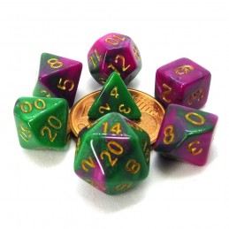 Set di dadi poliedrici mini. I dadi misurano circa 12 mm contro i 16 mm dei dadi standard. Piccoli e curatissimi.