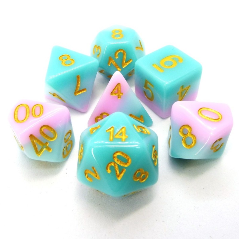 Set di dadi Mistici sono set di dadi dall'aspetto marmorizzato, con sfumature di due colori in contrasto con la colorazione dei numeri. Veramente eleganti e affascinanti.