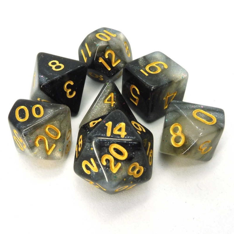 Mitici - Set di dadi Scintillio d'Argento (Nero / Oro)