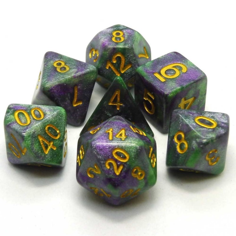 Set di dadi poliedrici adatti particolarmente adatti per qualsiasi gioco di ruolo come Dungeons & Dragons, Savage Worlds, Pathfinder e tanti altri.
