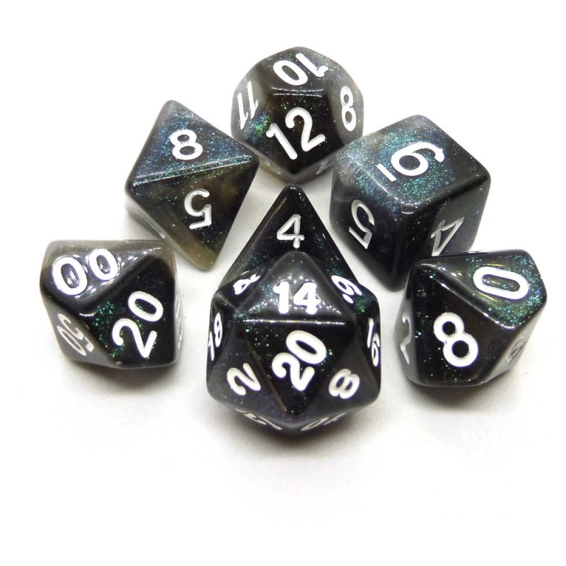 Questo set di 7 dadi poliedrici fa parte della collezione Spiriti della Natura. Ogni dado ha, al posto del numero relativo al suo massimo risultato, la rappresentazione di un animale e lo stesso dado propone sfumature e variazioni cromatiche in tono con l'animale rappresentato.
