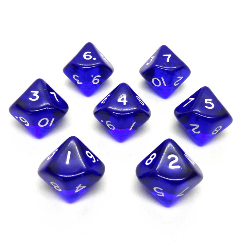 Set di 7 dadi a 10 facce da 16 mm, serie Trasparenti.