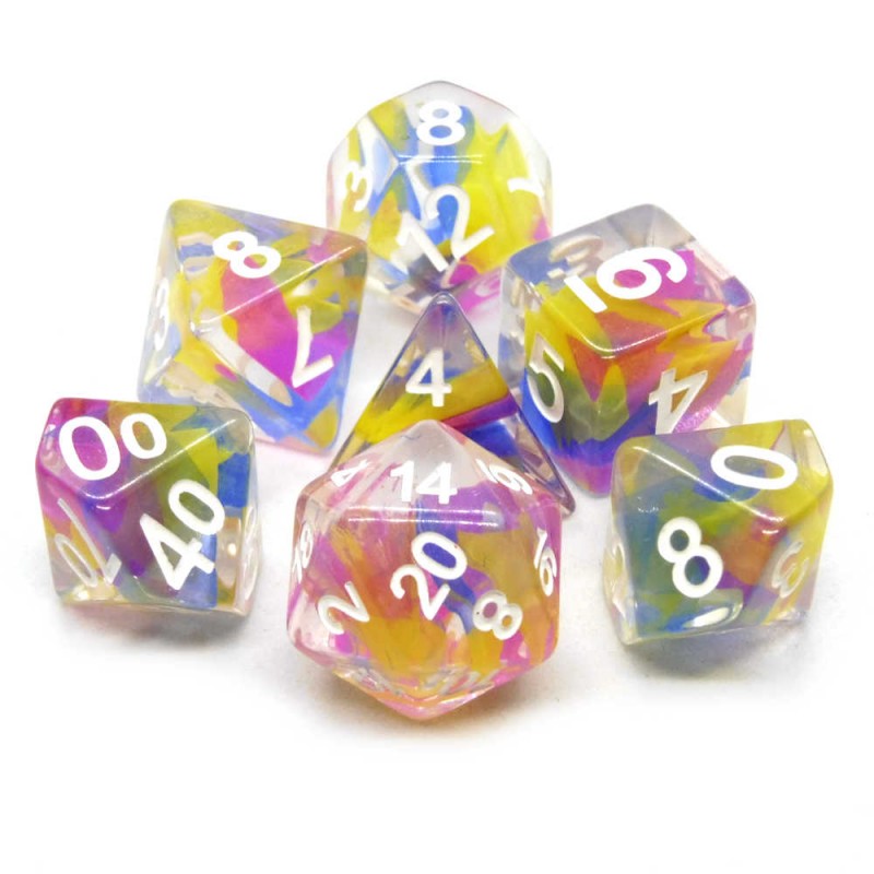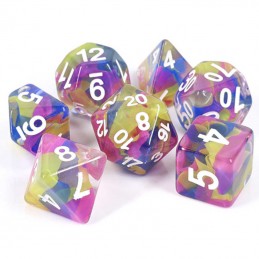 Set di dadi Mistici sono set di dadi dall'aspetto marmorizzato, con sfumature di due colori in contrasto con la colorazione dei numeri. Veramente eleganti e affascinanti.