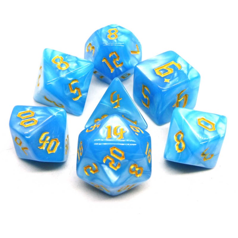 Questo set di 7 dadi poliedrici fa parte della collezione Spiriti della Natura. Ogni dado ha, al posto del numero relativo al suo massimo risultato, la rappresentazione di un animale e lo stesso dado propone sfumature e variazioni cromatiche in tono con l'animale rappresentato.