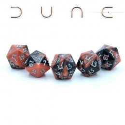 Un bellissimo set di dadi personalizzati ispirati al pianeta Arrakis, individua il segno dei vermi su questi dadi dai colori che ricordano il melange e porta il potere dei Creatori nel tuo Dune: Avventure nell’Imperium.