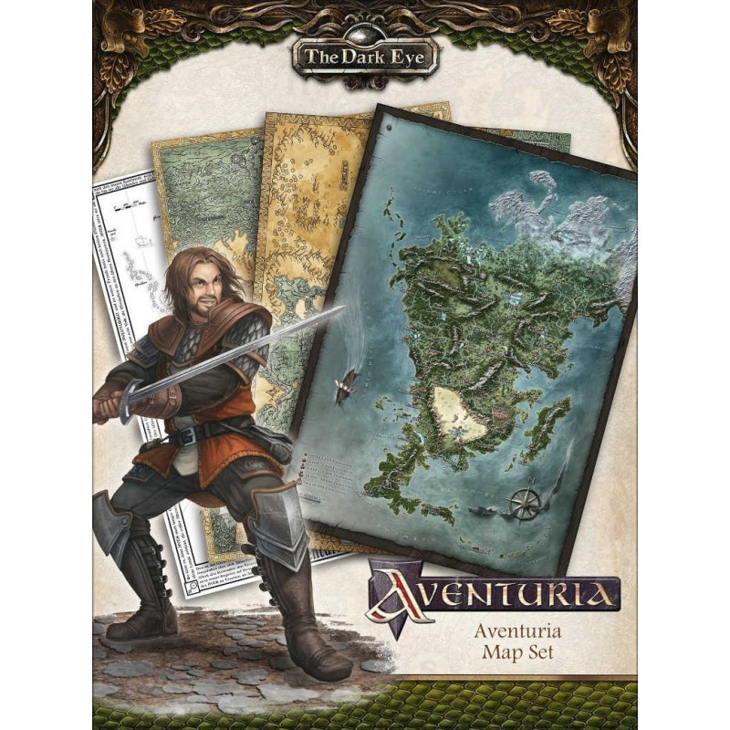 Progettate per essere compatibili con l'Almanacco di Aventuria, queste mappe offrono un'entusiasmante panoramica del mondo di Dere e del fantastico continente Aventuria. Ogni mappa presenta un aspetto diverso, come geografia, regioni e divisioni politiche. Le versioni per i giocatori consentono agli eroi di pianificare e registrare i loro viaggi epici direttamente sul tavolo da gioco.